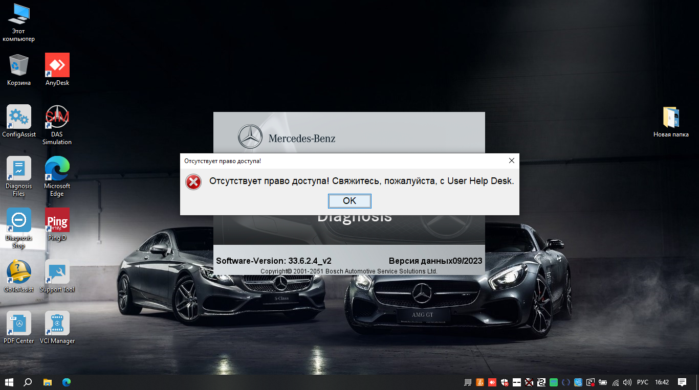 Многие клиенты часто сталкиваются с появлением ошибки - -. она ознчает что закончился срок активации программ Xentry и DAS, либо просто слетели ключи активации. В таком случае программа выдает ошибку Отсутствует право доступа! Свяжитесь, пожалуйста, с User Help Desk.